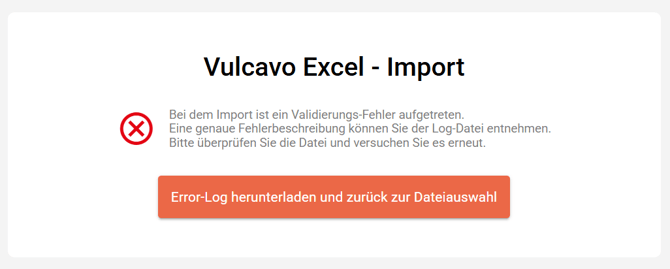Wenn Sie unseren "Vulcavo Excel-Import" nutzen, ist es möglich, dass Sie beim Versuch, Ihre Excel hochzuladen, auf eine Fehlermeldung stoßen und ein Error-Log herunterladen können.