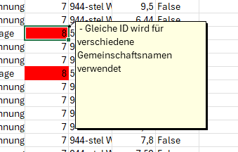 Laden Sie in diesem Fall das Error-Log herunter und schauen Sie sich im Reiter "Gemeinschaftstyp-ID " die rot markierten Felder an. Es kann sein, dass Sie nun die Fehlermeldung "Gleiche ID wird für verschiedene Gemeinschaftsnamen verwendet" feststellen:
