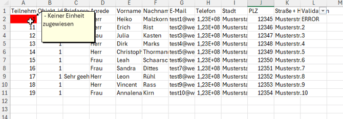 Laden Sie in diesem Fall das Error-Log herunter und schauen Sie sich im Reiter "Teilnehmer" die rot markierten Felder an. Es erscheint diese Fehlermeldung: